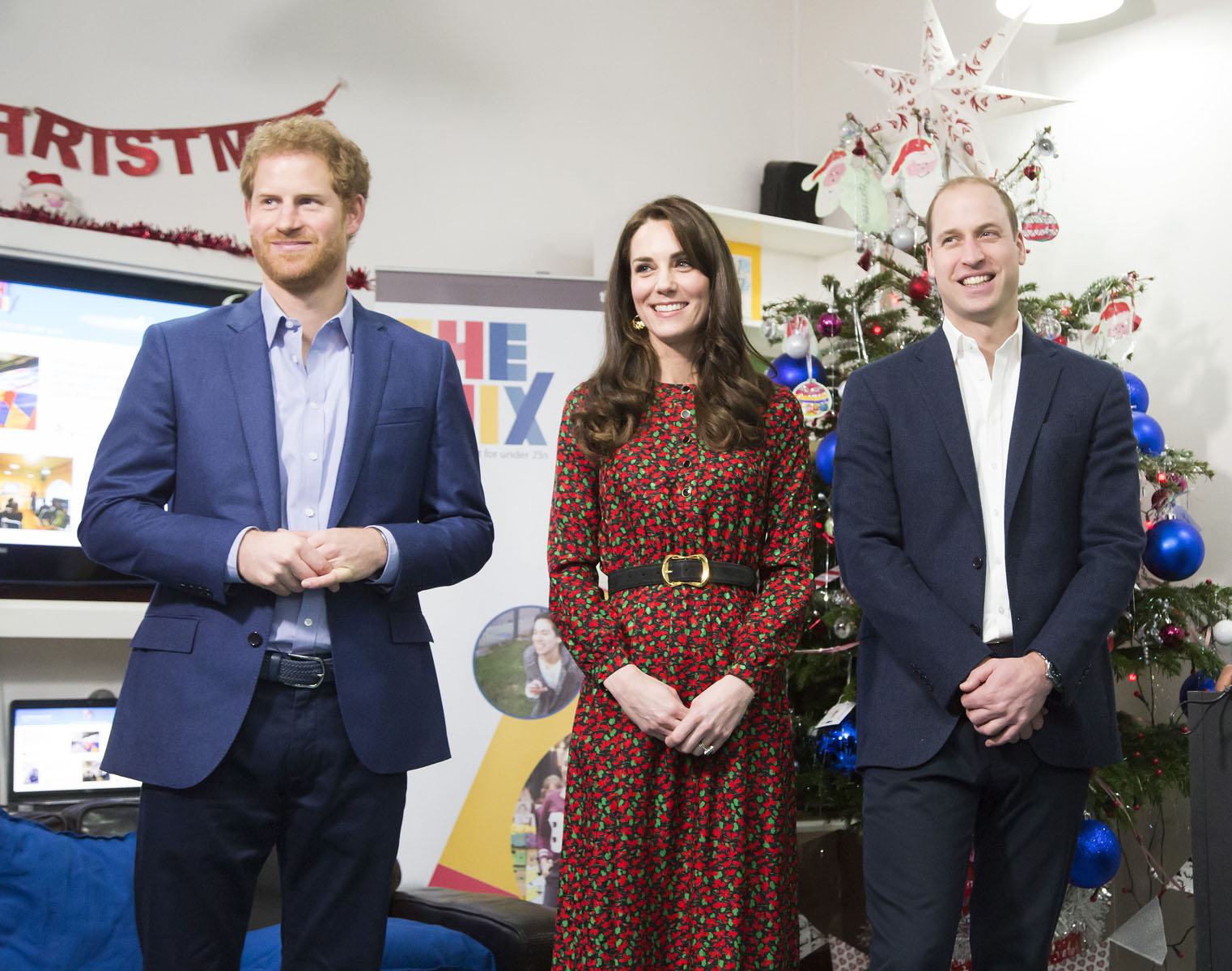 The Duke and Duchess of Cambridge and Prince Harry celebrated the work of volunteers and  counsellors at the Heads Together Christmas party hosted by youth support service The Mix.